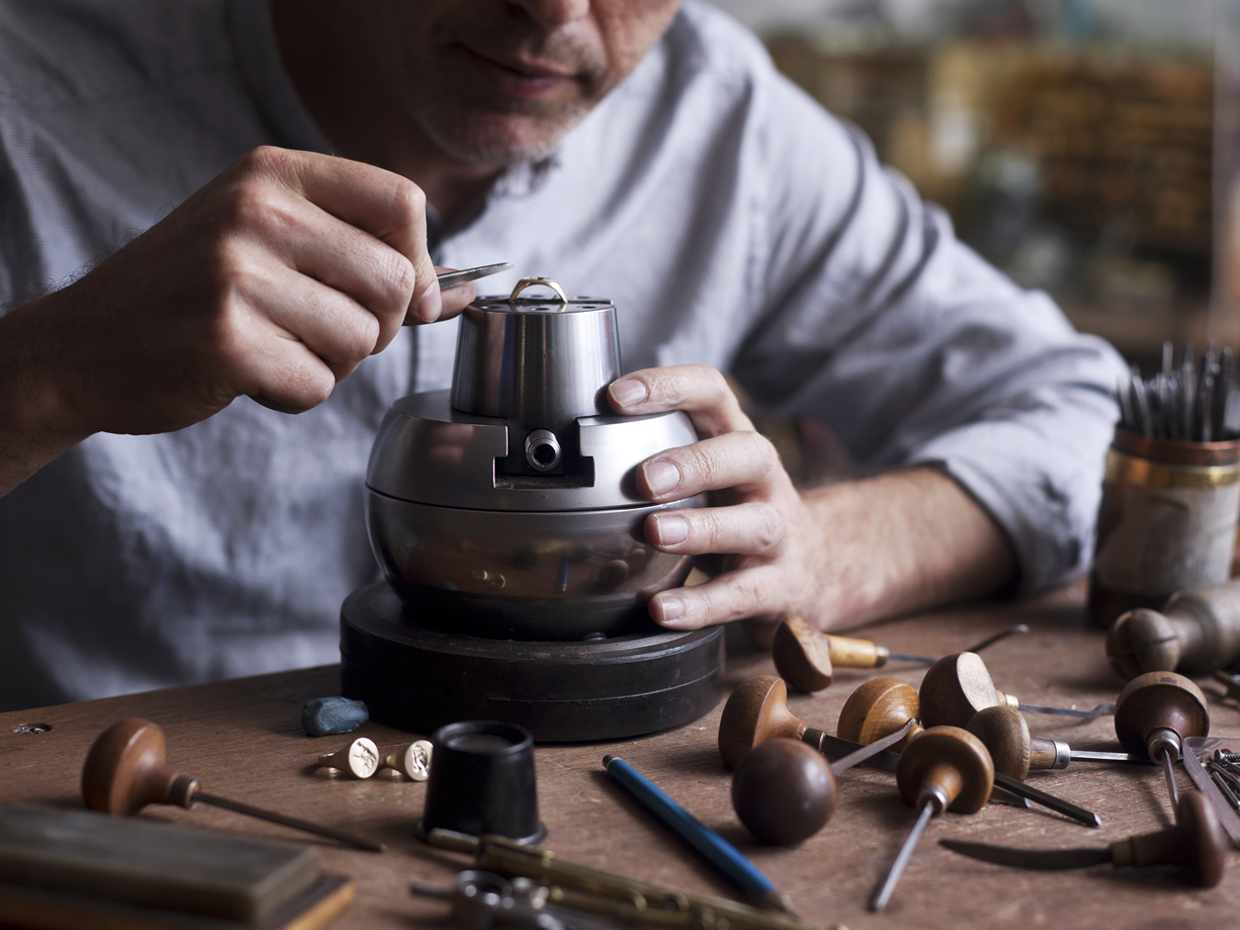 Our team of craftsmen use an array of very small chisels, known as gravers, it is these that pare away the metal to produce the desired symbol or effect. They are handmade and sharpened to produce different cuts and textures. It takes an enormous amount of experience just to make these tools, that have remained unchanged for hundreds of years.