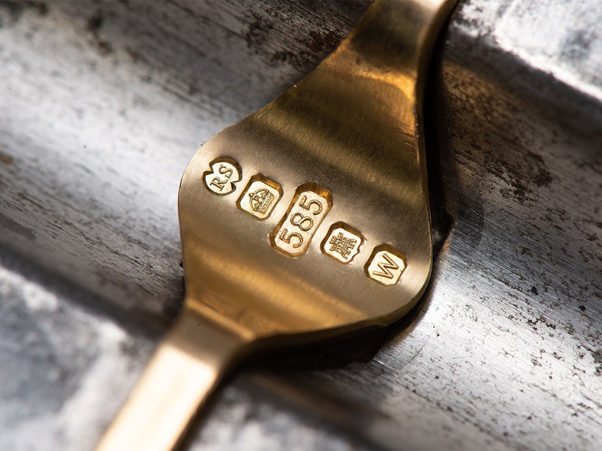 Being based in London, we use the London Goldsmiths' Company assay office which has been responsible for testing the quality of precious metals since 1327. In fact, the word hallmarking itself refers to the Goldsmiths' Hall where, from the 15th century, London craftsmen brought their work to the ‘Hall’ for assaying and marking.